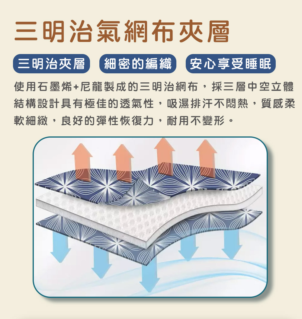 🔶品名:石墨烯透氣冰涼床墊