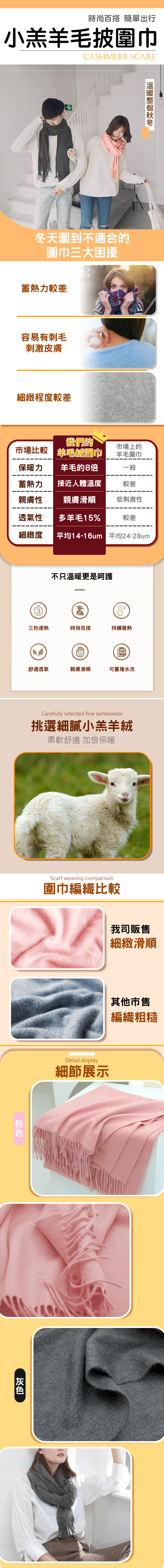 🔶成分:100%聚酯纖維(內含羊毛成分) 🔶規格:220x70cm±10% 🔶重量:300g±10% 🔶材質:100%聚酯纖維(內含羊毛成分) 🔶顏色:灰色、粉色 🔶產地:中國