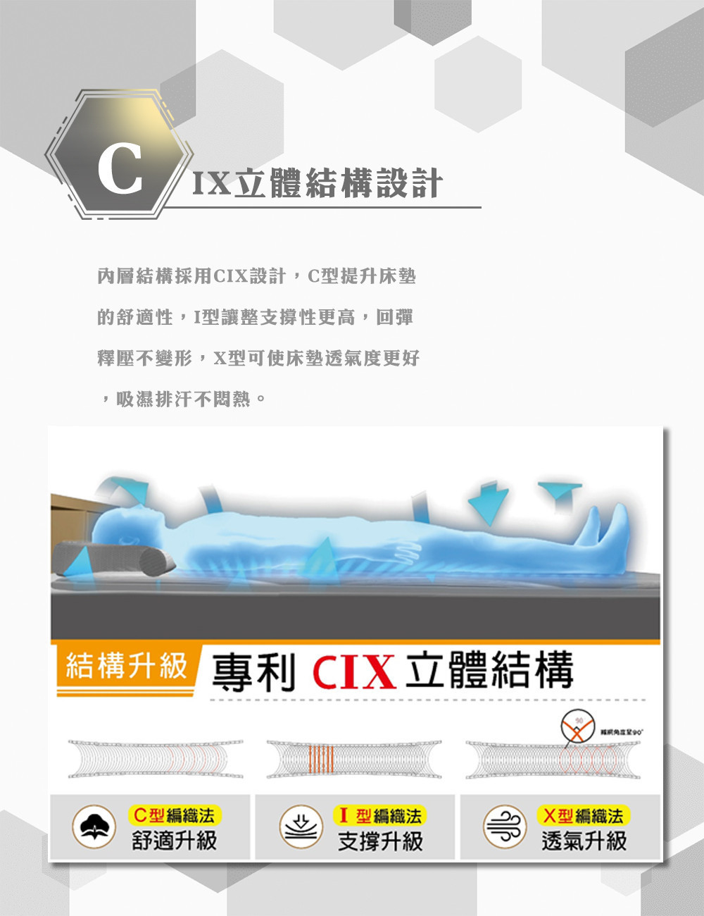 ✔️X-90度I型直向編織法:擁有最佳的回彈力,猶如百萬隻手在支撐,輕巧不變形