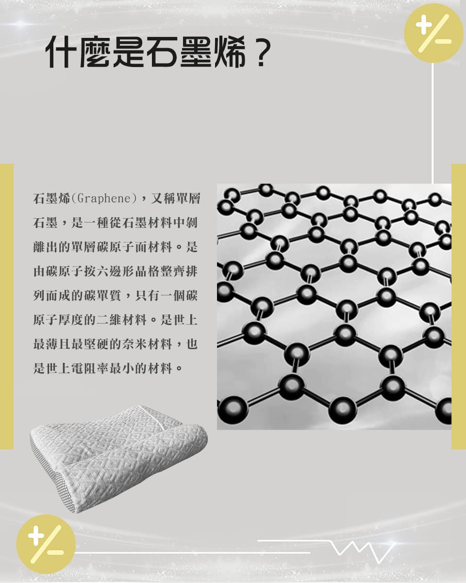 品名:石墨烯枕 尺寸:40x60cm 表布:聚酯纖維(含石墨烯) 填充物:聚酯纖維 重量:1500g±5% 顏色:灰色 產地:中國 洗滌方式: 1.請將商品置於水中以手洗滌(枕套、墊片可機洗,請務必使用洗衣袋) 2.不可熨燙、不可烘乾、不可漂白、不可乾洗、不可擰乾 3.請於陰涼處懸掛晾乾,避免於烈日下曝曬 4.枕心結構較特殊,請勿機洗,以免變形損毀