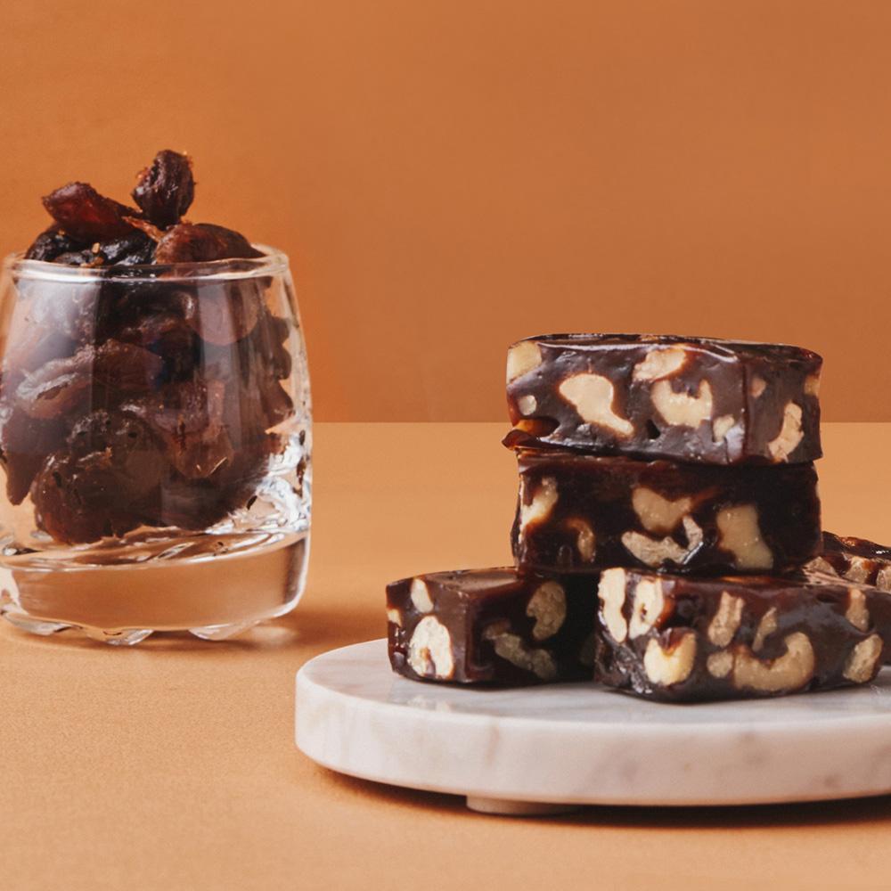 成分:棗泥(黑棗、砂糖、異麥芽寡糖漿、橄欖油)、麥芽糖(樹薯澱粉、水)、核桃、水、桂圓、海藻糖、樹薯粉、大豆油、鹽、大豆卵磷脂。