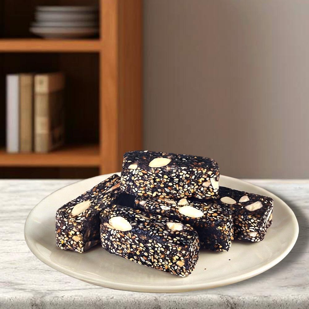 成分:黑芝麻、D-山梨醇液(甜味劑)、麥芽糖醇(甜味劑)、杏仁、麥芽糊精、馬鈴薯澱粉、鹽、寒天粉(洋菜膠)